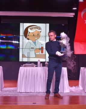 12.03.201927 Şubat 2019 ve 1 Mart 2019 tarihlerinde ilkokul öğrencilerimize yönelik "Eğlenceli Deneyler" konulu sabah töreni gerçekleştirilmiştir. Törende "Fil Hortumu, Kuru Buz ve Patlayan Şişe" gibi öğrencilerimizin merak ettikleri görsel deneylere yer verilmiştir. Öğrencilerimiz kimyasal tepkimeler sonucunda gaz ve ısı açığa çıkışı, karbondioksit gazının basınç etkisiyle dondurulabileceği gibi konularda farkındalık kazandılar. Daha sonra bu kazanımlara yönelik planlanan laboratuvar çalışmalarında, öğrencilerin seviyelerine uygun deneyleri yaparak, yaşayarak, eğlenerek bilimsel deneyimler elde etmeleri sağlanacaktır.